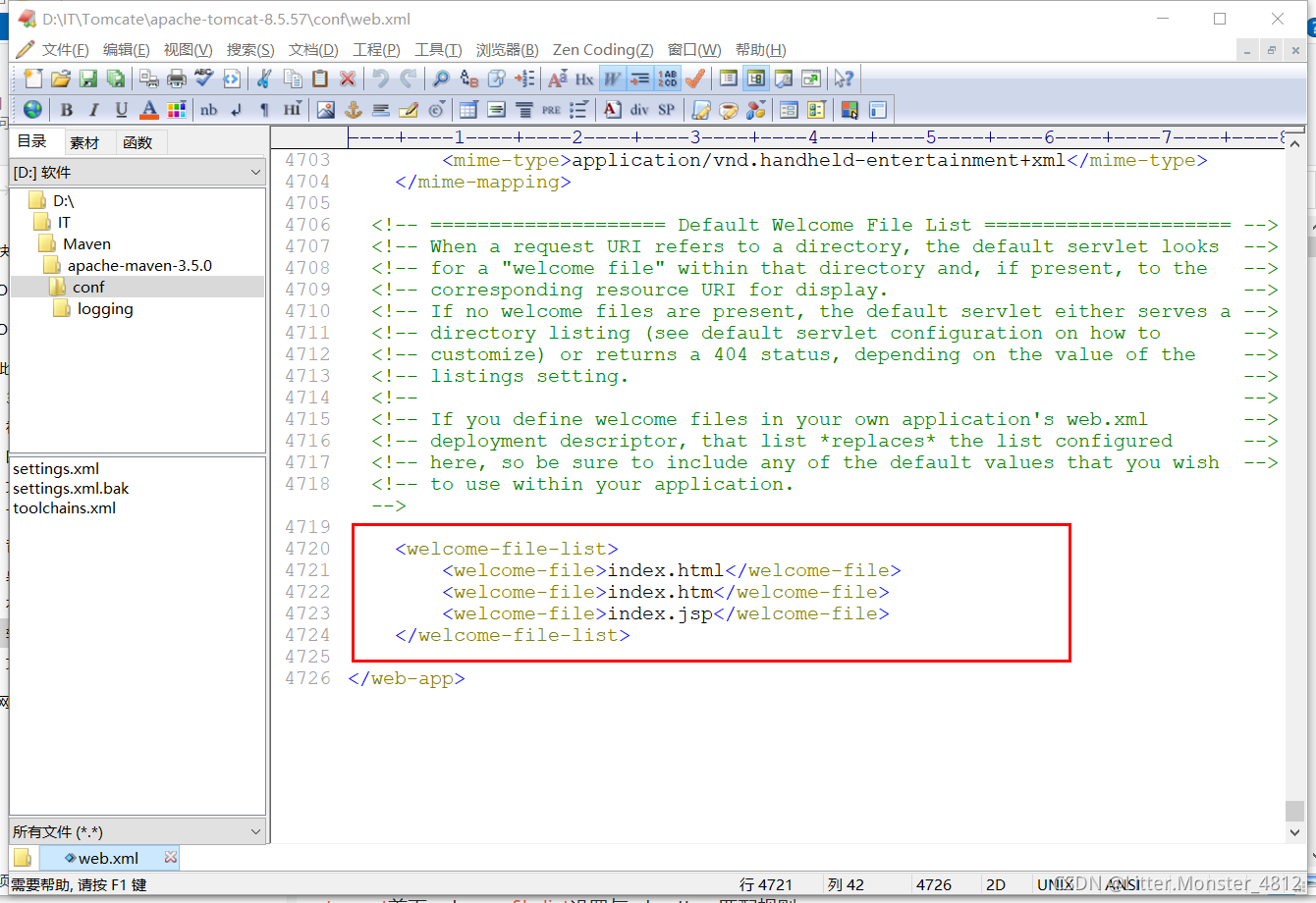 原来在Tomcat的apache-tomcat-8.5.57\conf\web.xml文件中默认配置了访问页面。