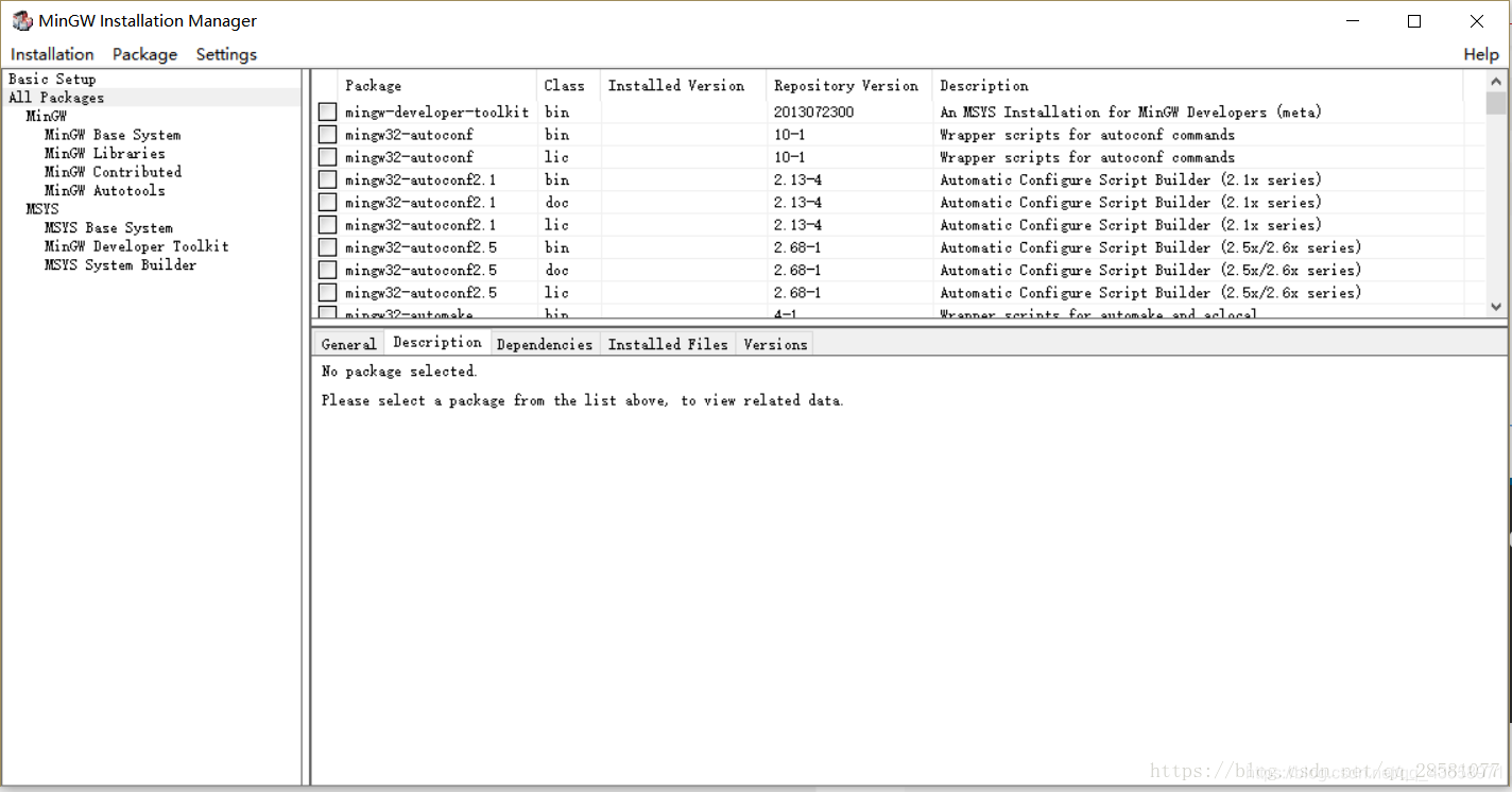 1.安装MinGW编译管理安装软件 官方下载:https://osdn.net/projects/mingw/releases/ 作者百度云备份下载:https://pan.baidu.com/s/1 ...