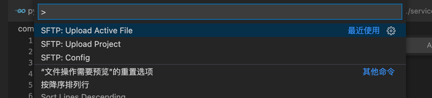 4. 经过上面的一些步骤,sftp基本上就配置完成了,使用快捷键command + shift + P来测试一下吧。