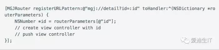 首页只需调用[MGJRouter openURL:@"mgj://detail?id=404"]就可以打开相应的详情页。