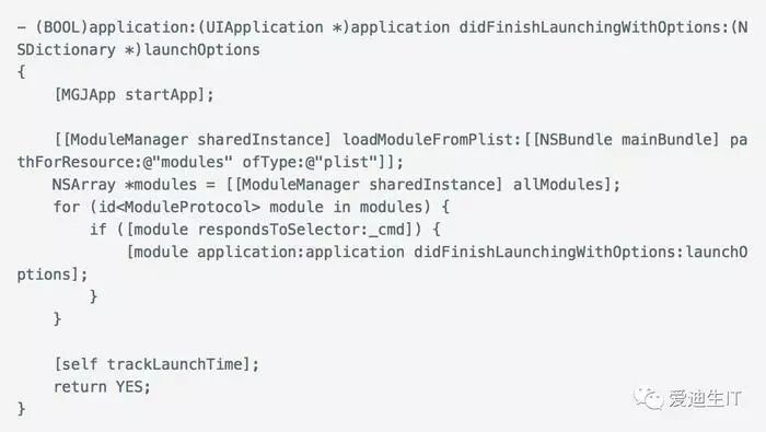 每个Module都实现了ModuleProtocol,其中有一个- (BOOL)applicaiton:didFinishLaunchingWithOptions:方法,如果实现了的话,就会被调用。