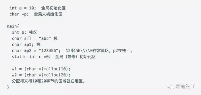 3.全局区(静态区) (static) 全局变量和静态变量的存储是放在一起的,初始化的全局变量和静态变量存放在一块区域,未初始化的全局变量和静态变量在相邻的另一块区域,程序结束后有系统释放。