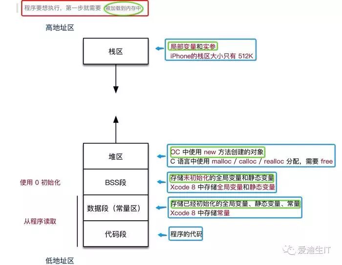 堆区(heap) 由程序员分配和释放,如果程序员不释放,程序结束时,可能会由操作系统回收 ,比如在ios 中 alloc 都是存放在堆中。