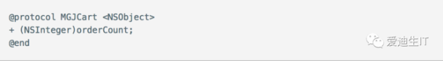 可以看到通过协议可以直接指定返回的数据类型。然后在购物车组件内再新建个类实现这个协议,假设这个类名为MGJCartImpl,接着就可以把它与协议关联起来[ModuleManagerregisterClass:MGJCartImplforProtocol:@protocol(MGJCart)],对于使用方来说,要拿到这个MGJCartImpl,需要调用[ModuleManagerclassForProtocol:@protocol(MGJCart)]。拿到之后再调用+ (NSInteger)orderCount就可以了。