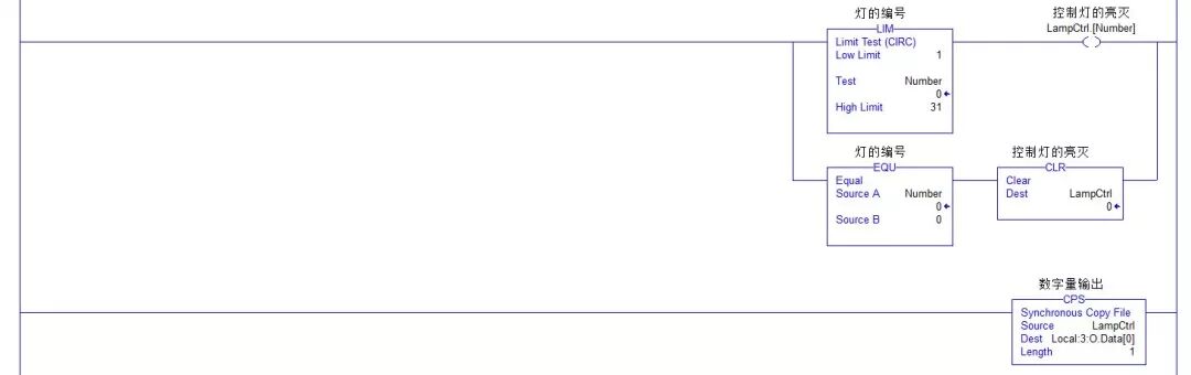 2. 编写程序如下图,其中灯的亮灭控制输出为:LampCtrl.[Number],这里一定要限制Number的大小在1到31,如不限制在这个范围,一旦超出,就会造成间接寻址维度溢出,导致CPU严重故障,致使其停机.