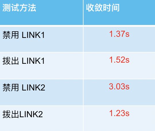 从上图中的测试拓扑和结果中可以看出,不论是软件操作上的禁用还是硬件拔出,在设定的收敛时间内,服务器的网络一直保持高可用。