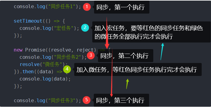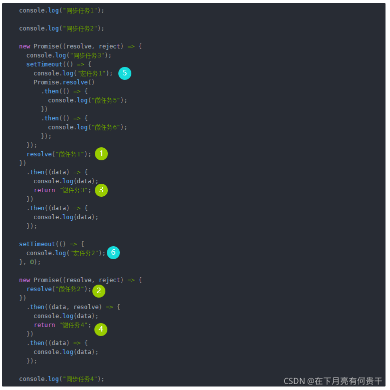 (要记住微任务与宏任务队列都存在时一定是微任务先执行完再来执行宏任务,即使是宏任务执行产生的微任务也同理)