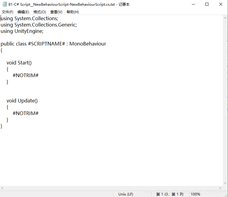 - 修改Unity脚本模板的方法合计