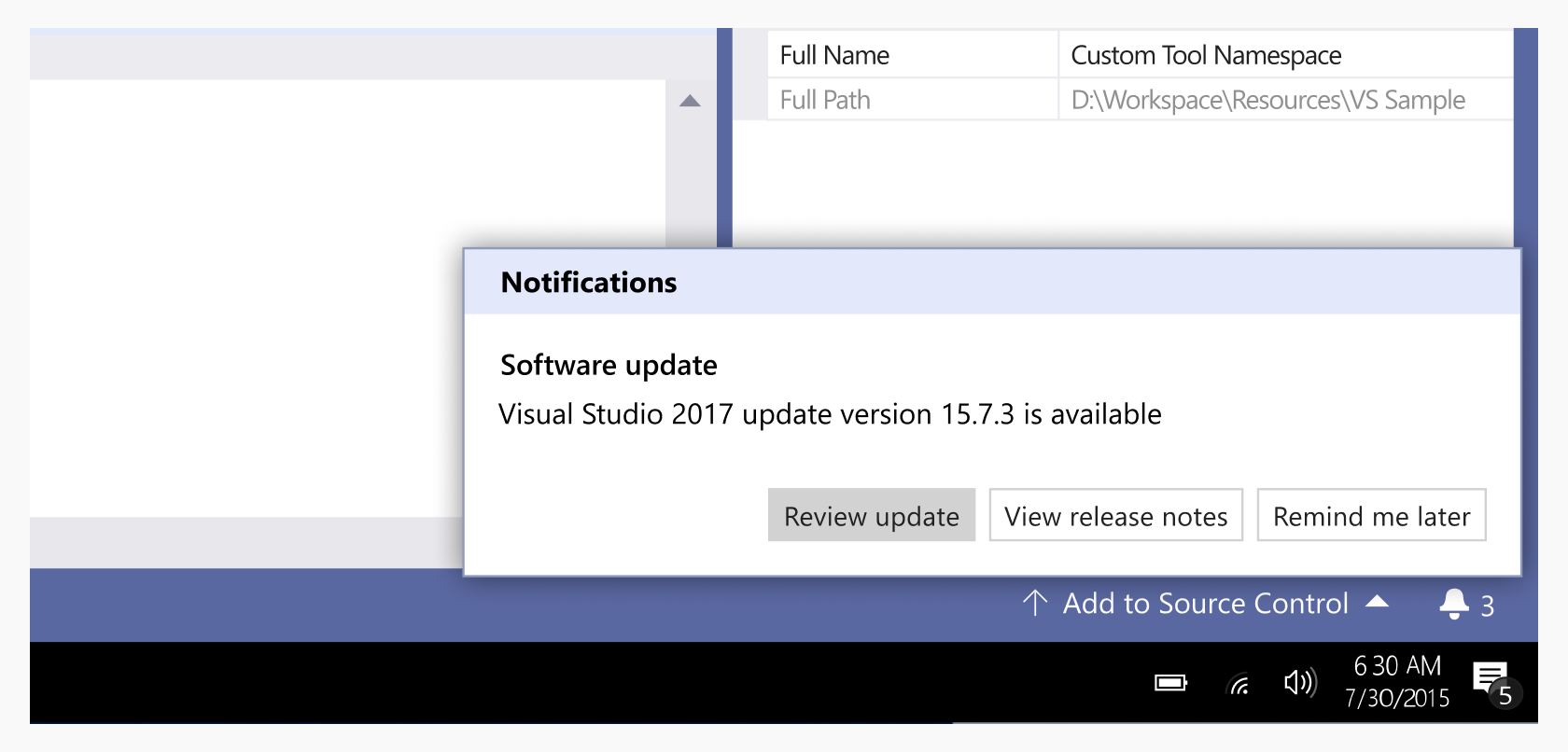 明年年初,我们的一个预览版本将包括通知UI更新。通过与你交谈,我们听说当前通知的位置,图标,和国家一直不清楚你一段时间。为了解决这个问题,我们正在通知在IDE的底部的状态栏的切入点。这个新的位置,避免破坏性的UI打断你的注意力,而使我们显示各种不同的服务信息(从现场分享拉请求评论的状态)的未来。我们也从国旗钟更新图标,根据你的意见。