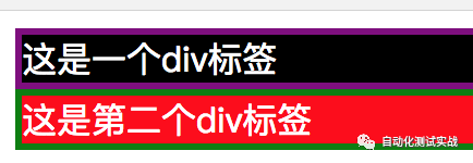 上面代码中有两个div标签,而在css样式表中只有一个样式文件,那么此时是不是两个div标签都使用同一个样式呢?大家看了以后就知道,答案是肯定的。那么我们现在想让两个div样式不一样,该怎么写呢?此时我们就需要对两个div有所区分,上面css文件中选择器叫做标签选择器,所以只要是div标签都会适用于对应的样式。现在要区别设置,就涉及到标签选择器了: