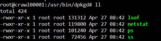 ls /usr/bin/dpkgd/ #黑客替换的工具(netstat lsof ps ss),系统自带的工具正常不会在这个目录下,并且也不可用。