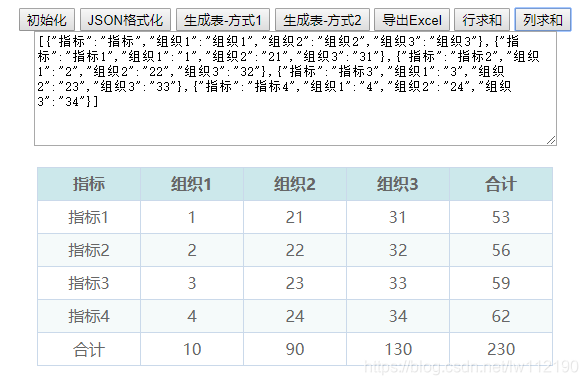 JSON格式化 动态生成表格 表格转置 行列转换 Excel导出 行求和 列求和