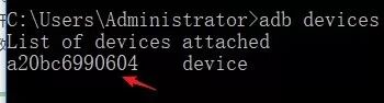 1、电脑手机通过数据线连接好,输入命令adb devices,获取手机的设备识别号