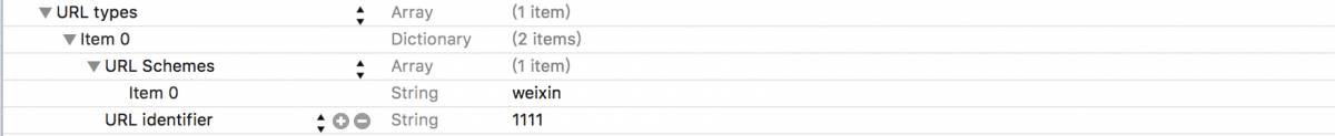 点击项目名称,点击“Info”选项卡,在“URL Types”选项中,点击“+”, 在“URL Schemes”中输入微信的注册码