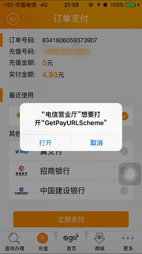 //通过openURL的方法唤起支付界面