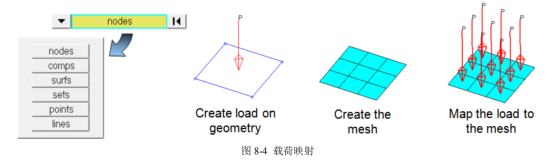 然后在网格剖分结束后,通过 HyperMesh 中的载荷映射功能,将此前施加于几何上的载荷,精确映射到有限元模型上去。