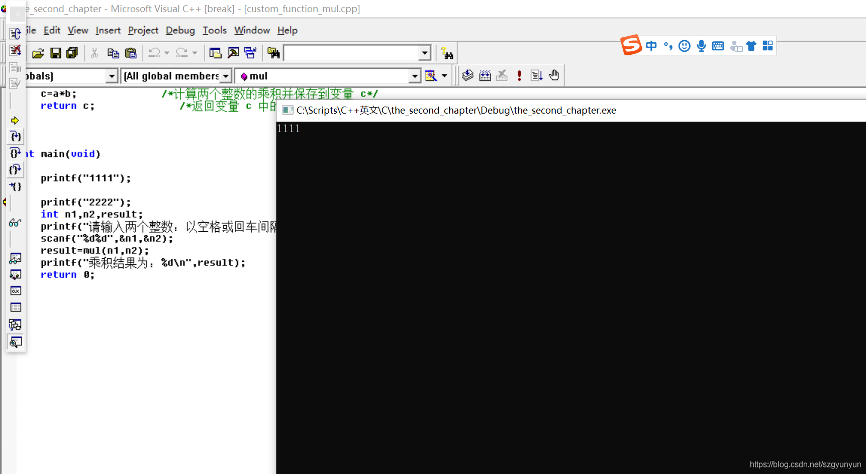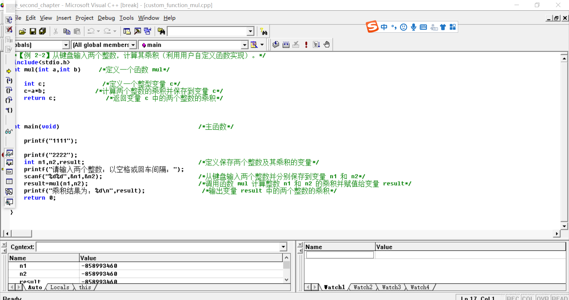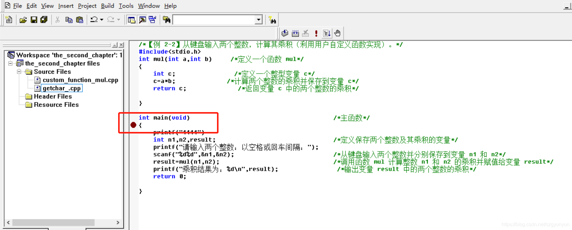 【例 2-2】从键盘输入两个整数,计算其乘积(利用用户自定义函数实现)。