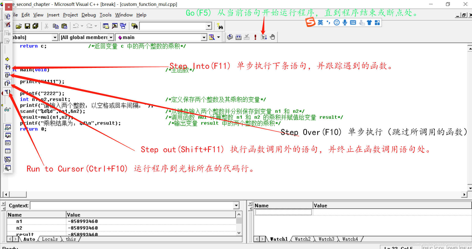 Go(F5) 从当前语句开始运行程序,直到程序结束或断点处。