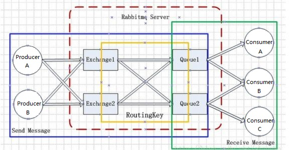 AMQP模型中,消息在producer中产生,发送到MQ的exchange上,exchange根据配置的路由方式投递到相应的Queue上,Queue又将消息发送给已经在此Queue上注册的consumer,消息从queue到consumer有push和pull两种方式。