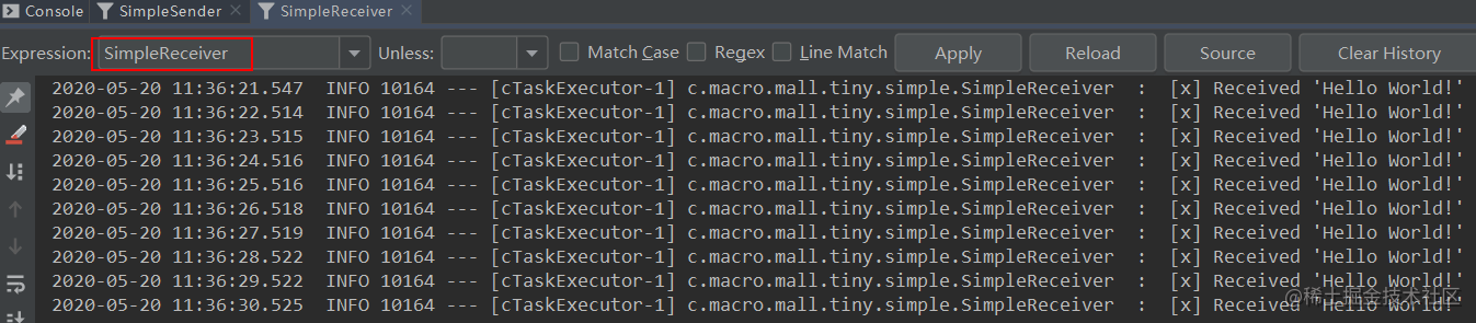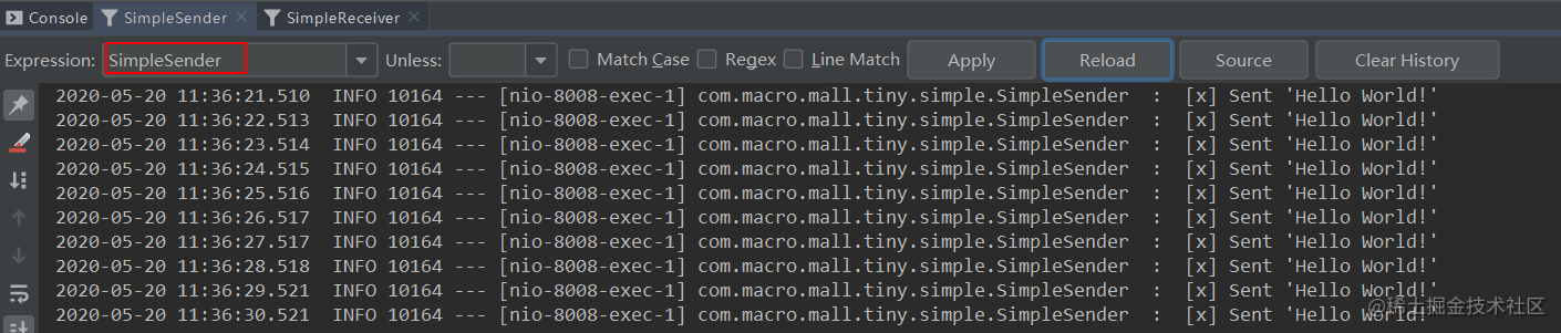 - 运行后结果如下,可以发现生产者往队列中发送包含不同