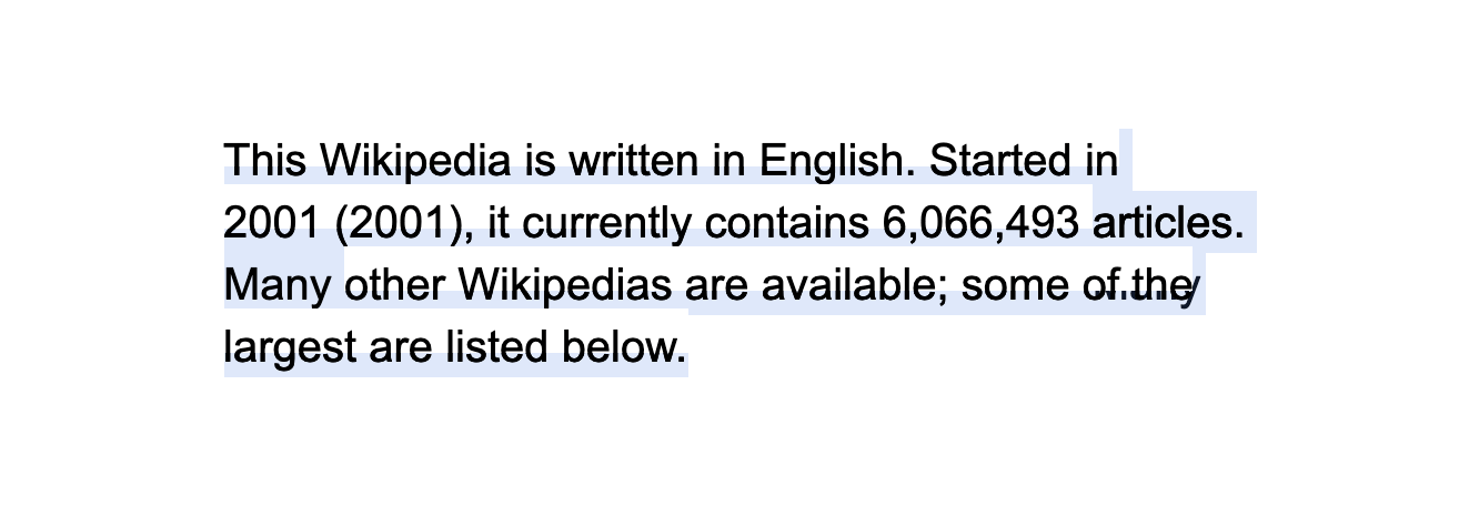 此解决方案有效,但不适用于所有文本。例如,下面的文本包含一个逗号,数字,大写字母。请注意,选择在所有单词中都不一致。