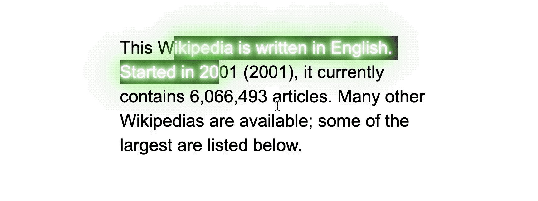 不幸的是,上述解决方案不适用于多行文字。为了使其工作,我们应该使用JavaScript将每个单词包装在一个内联元素(例如<span>)中。一旦每个字都在 <span> 元素中,就应该给每个字添加一个伪元素,也可以使用同样的技术。