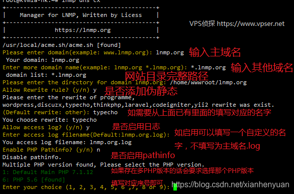 然后重新执行 lnmp dnsssl ali,填写完相关信息,顺利的话就 Let’s Encrypt SSL Certificate create successfully.