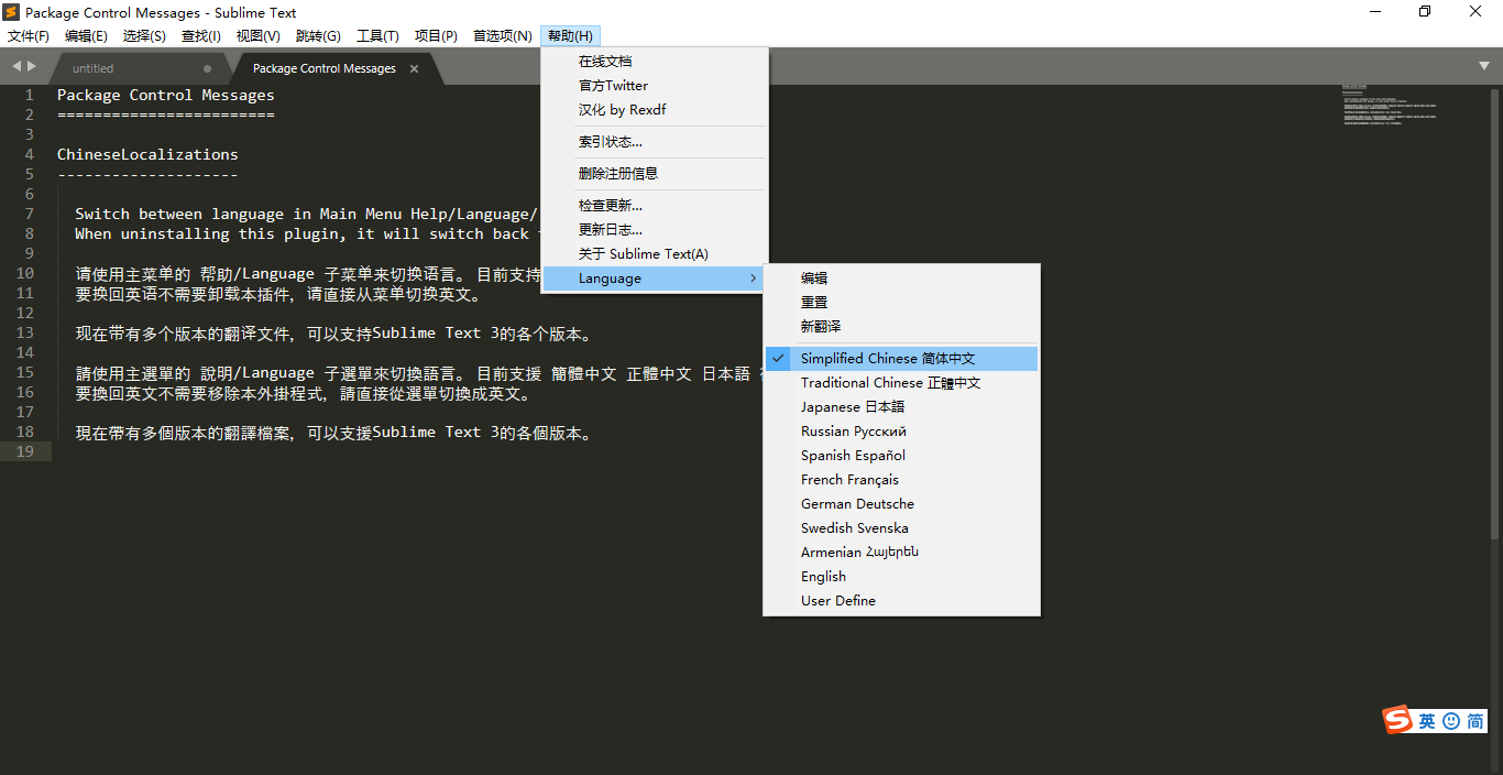 preferens——package controller——输入 install package——等待安装完成后输入 localizationChinese 请使用主菜单的 帮助/Language ...