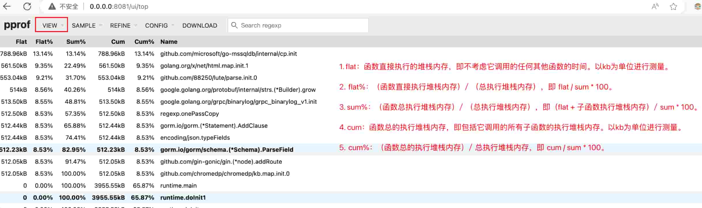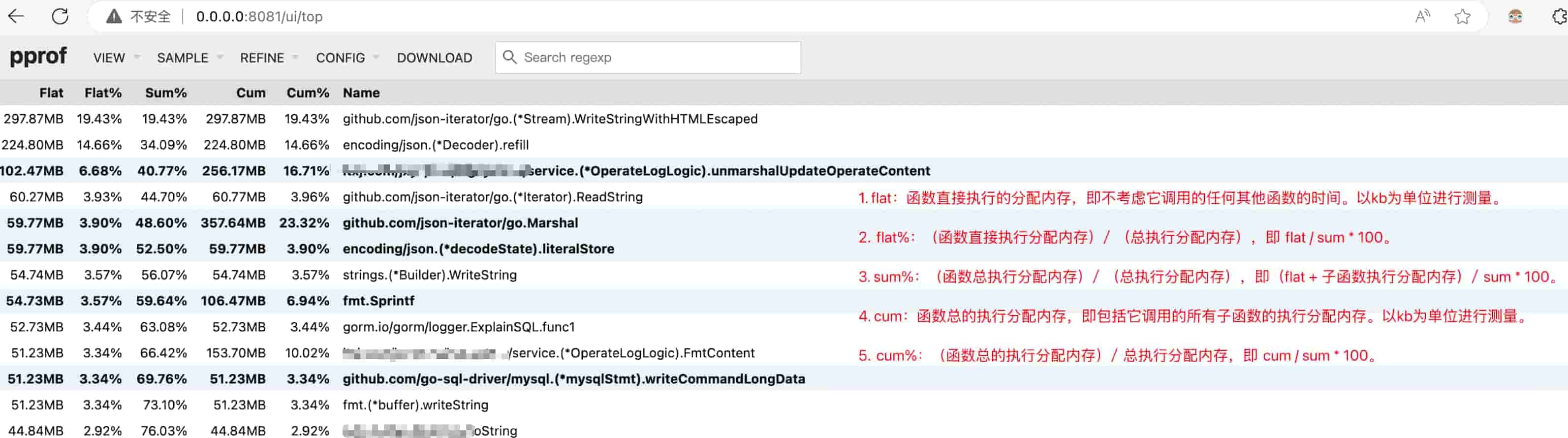 go tool pprof -http=0.0.0.0:8081 http://0.0.0.0:30552/debug/pprof/allocs # 内存分配分析(哪些函数在分配内存)