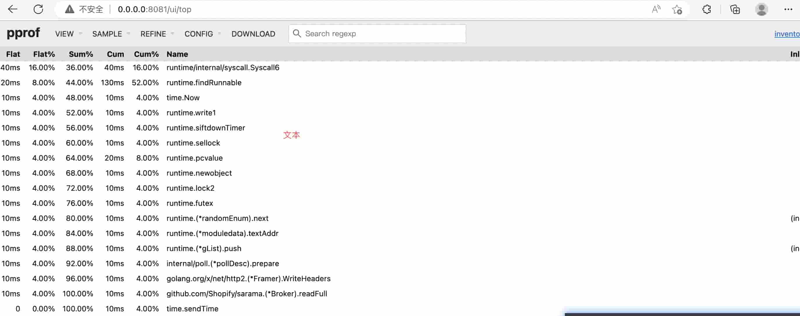 top视图:若火焰图不太能定位函数代码实际位置,可以查看 top 视图,会展示问题函数所在的代码文件