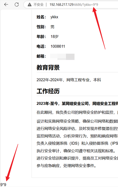通过get传参的方式将ykkx的值赋给ssti,ssti通过render_template加载到body中,ssti是被{{}}包括起来的,会被预先渲染转义,然后才被输出,不会被渲染执行