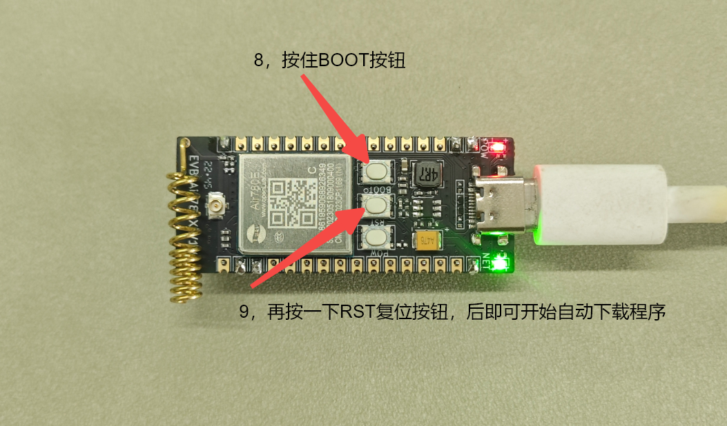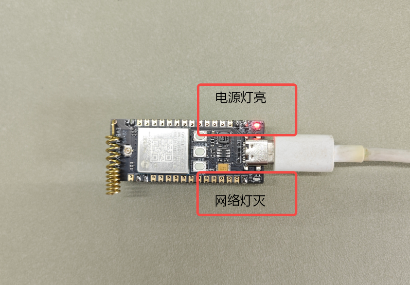 按下图所示通过TYPE-C线将开发板与电脑连接无误后,开发板电源指示红灯常亮,网络指示灯灭: