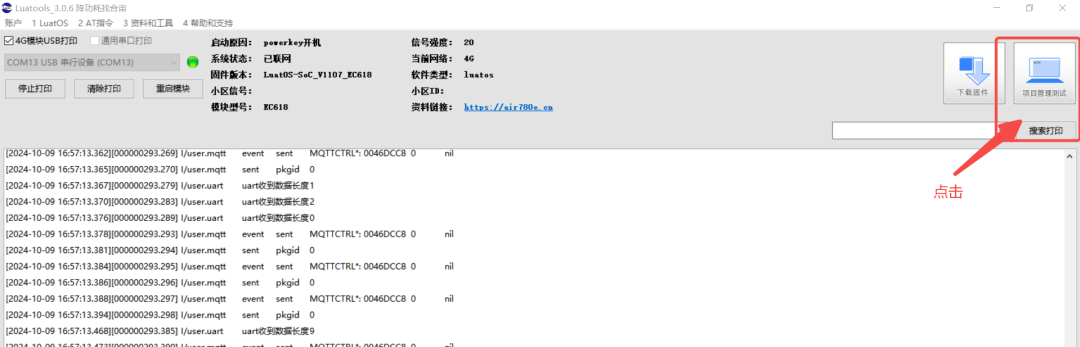 7.2 打开Luatool软件工具并进入项目管理测试页面