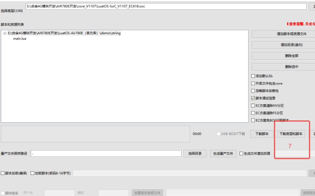 注:core固件,是基础环境,该固件由合宙官方提供,用户不可修改;源码脚本,为应用程序,可由客户自行修改;右键点我,另存为,下载完整压缩文件包。