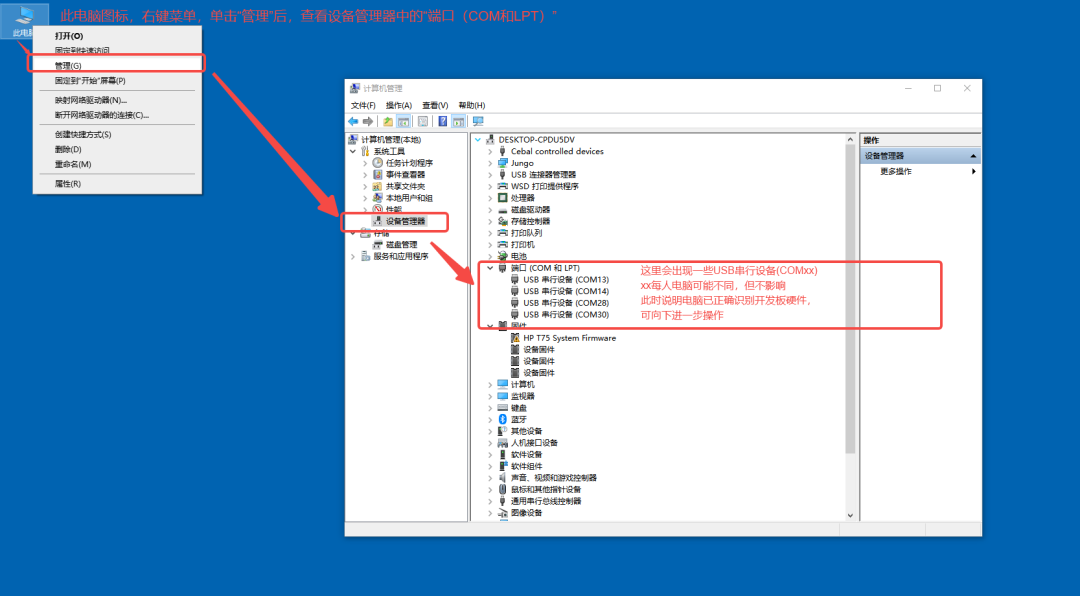 此时电脑设备管理器中会发现下图所示几个设备,即代表开机成功!