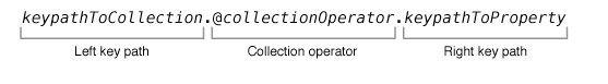 容器不仅仅能使用KVC方法实现对容器成员传递普通的操作消息,KVC还定义了特殊的一些常用操作,使用valueForKeyPath:结合操作符来使用,所定义的keyPath格式入下图所示