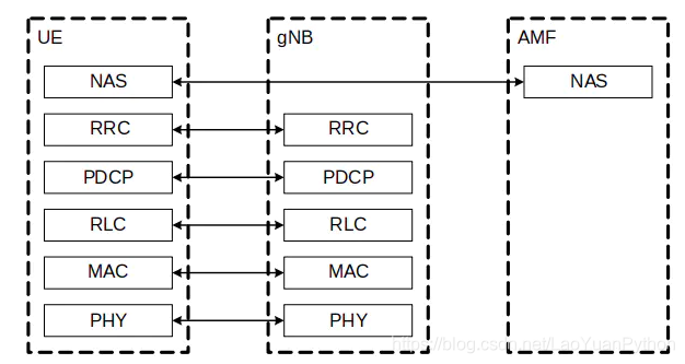 在网络通信模型中,都对应有分层的网络结构,如开放式系统互联(OSI)的七层模型(物理层、数据链路层、网络层、传输层、会话层、表示层和应用层)以及TCP/IP四层(网络接口层、网络层、传输层和应用层)模型。与此相对应,在5G各功能体之间的通信协议也都有对应的协议栈,因此5G包含了一系列的接口协议,每个协议也对应有不同的分层模型。