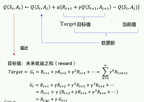 软更新方式,设置权重a每次更新一点点,类似学习率。这样最后Q值都会逼近目标值。
