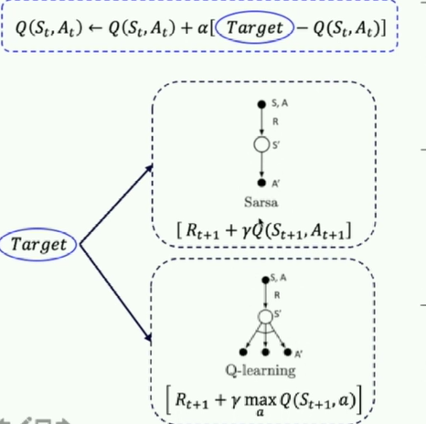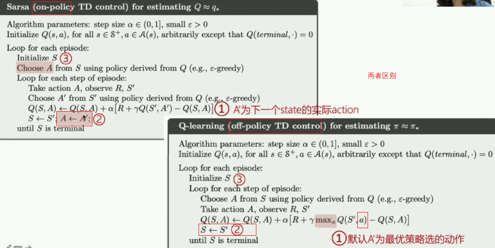 两者区别在于target不同,Qlearing默认下下一个动作为最优的策略,不受探索的影响。