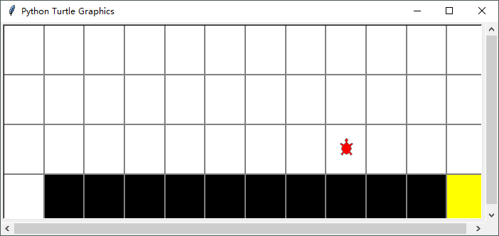 得到的结果发现在到达终点过程中距离悬崖远远的,因为程序中有个探索的过程,如果离得太近,下一步会掉下悬崖,重新开始拿到reward-100