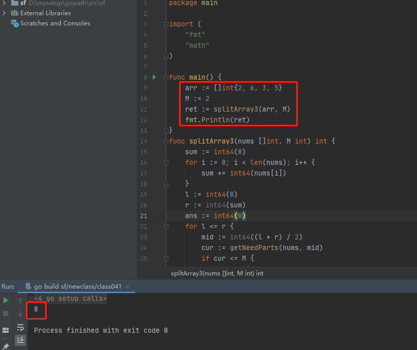 2021-04-17:给定一个整型数组 arr,数组中的每个值都为正数,表示完成一幅画作需要的时间,再 给定 一个整数 num,表示画匠的数量,每个画匠只能画连在一起的画作。所有的画家 并行工作,请 返回完成所有的画作需要的最少时间。【举例】arr=[3,1,4],num=2。最好的分配方式为第一个画匠画 3 和 1,所需时间为 4。第二个画匠画 4,所需时间 为 4。 因为并行工作,所以最少时间为 4。如果分配方式为第一个画匠画 3,所需时 间为 3。第二个画 匠画 1 和 4,所需的时间为 5。那么最少时间为 5,显然没有第一 种分配方式好。所以返回 4。arr=[1,1,1,4,3],num=3。最好的分配方式为第一个画匠画前三个 1,所需时间为 3。第二个画匠画 4,所需时间 为 4。 第三个画匠画 3,所需时间为 3。返回 4。