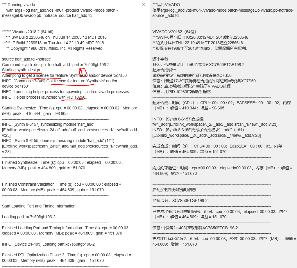 - 我们在① 的位置看到了我们的license文件的使用,当我们需要实现综合操作时,首先软件会检查我们是否获取了license。