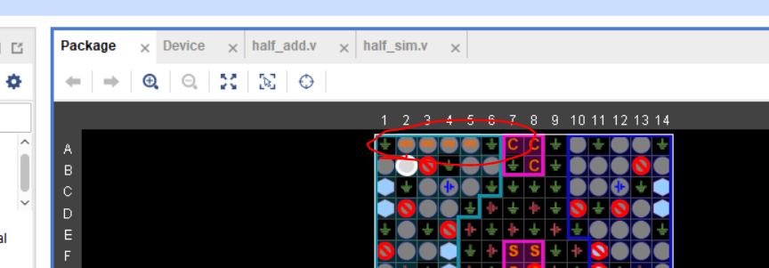 - 接着在DEVICE视图下我们可以看到我们刚才设置的管脚的位置。