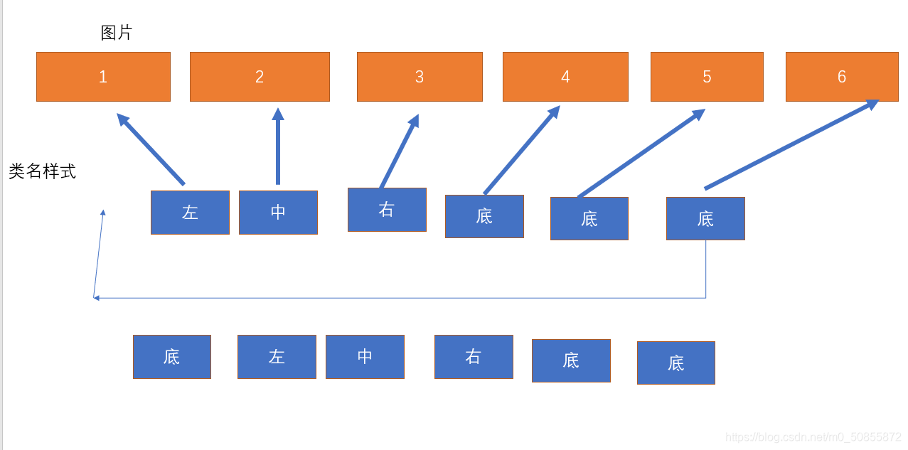 把6张图片的类名存在数组当中,这样可以通过修改数组,来修改图片对应的类名,左移时就是右边的图片变成中间,中间图片到左边,第四张图片到右边