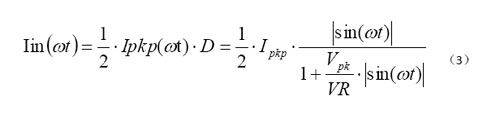 由图2可以看出,初级电感电流是三角波变化,峰值电流包络为正弦波,整流桥后的电流是整个开关周期的每个三角波的平均值,则其大小表示为[2]: