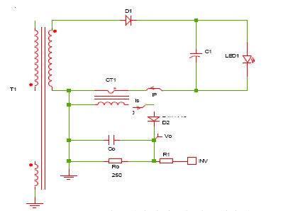 本设计中的恒流反馈区别于常见的恒流反馈,如图4所示。此反馈设计相比传统使用CV/CCIC设计的恒流反馈电路有以下优点,其一减少元件器个数降低BOM的成本,其二反馈响应时间快无过冲,其三此设计具有短路保护功能,在输入300VAC时,若输出短路,测得输入功率小于1.8W,波形如图3所示。次级绕组电流升高,电流互感器检测此电流高于预设定值时,CT1的Vo端输出高电平送到IC的INV脚,MOSFET关断(见图3)。其工作原理是使用一个电流互感器检测二次测绕组的三角波电流,经过整流滤波后送到TDA4863-2的INV引脚进行精确的电流控制。