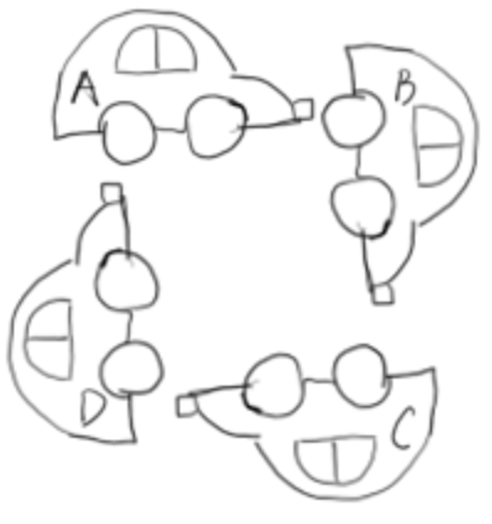 死锁:a堵住了d,d堵住了c,c堵住了b,b堵住了a,a需要b开动,b需要c开动,c需要d开动,d需要a开动-----谁也不能动。