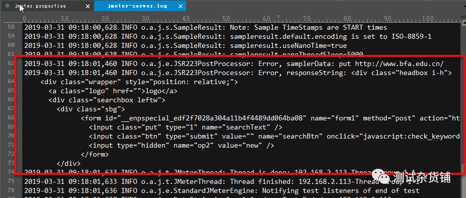 其中prev.getResponseDataAsString()得到服务器的返回报文,根据返回报文的情况,使用prev.setSuccessful设置取样器的成功与否,然后如果没有找到检查点,则将请求prev.getSamplerData()和返回报文同时记录到日志中,并设置prev.setSuccessful为false。