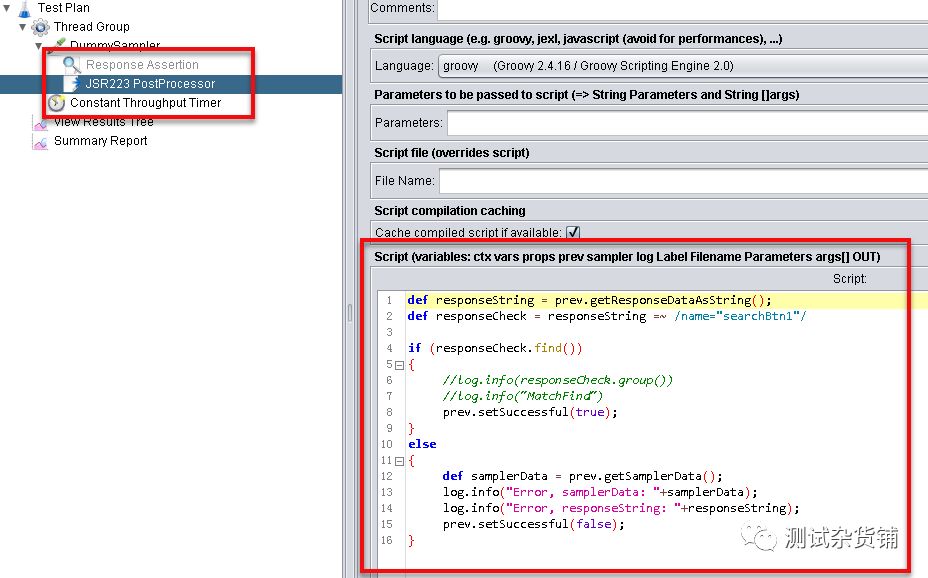 此时如果想查看出现错误时的具体上送请求和返回报文,使用PostProcessor来替代ResponseAssertion。Groovy代码如下: