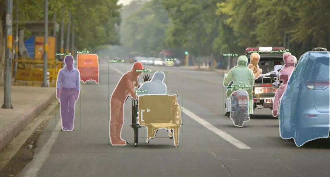 上面这个例子,用了端到端预训练的Mask R-CNN,在一块GPU上运行。如果要使用多个GPU,需要在第二行之后添加 —multi-gpu-testing \ 并更改最后的NUM_GPUS数量。